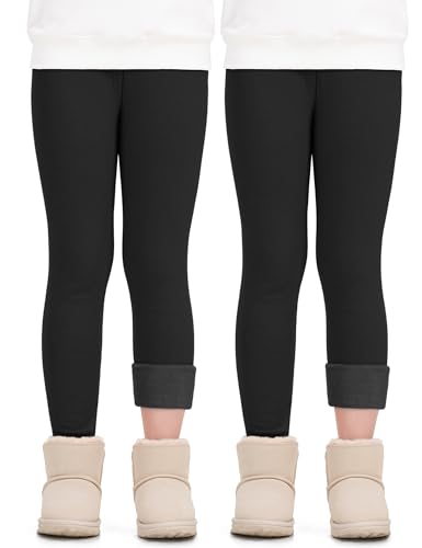 Kefiyis Girls Fleece Lined Leggings Winter Thermal Leggings Kids High Waist Cotton Thick Warm Trousers for 3-13 Years Black 120