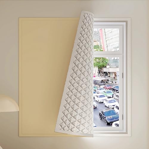 Insulated Thermal Window Cover - Window Warmer for Winter Thick Kit - Blackout Privacy Curtains - Weatherproofing Ccold Protector Noise-Reducing(Beige,W 120 x H 120 cm)