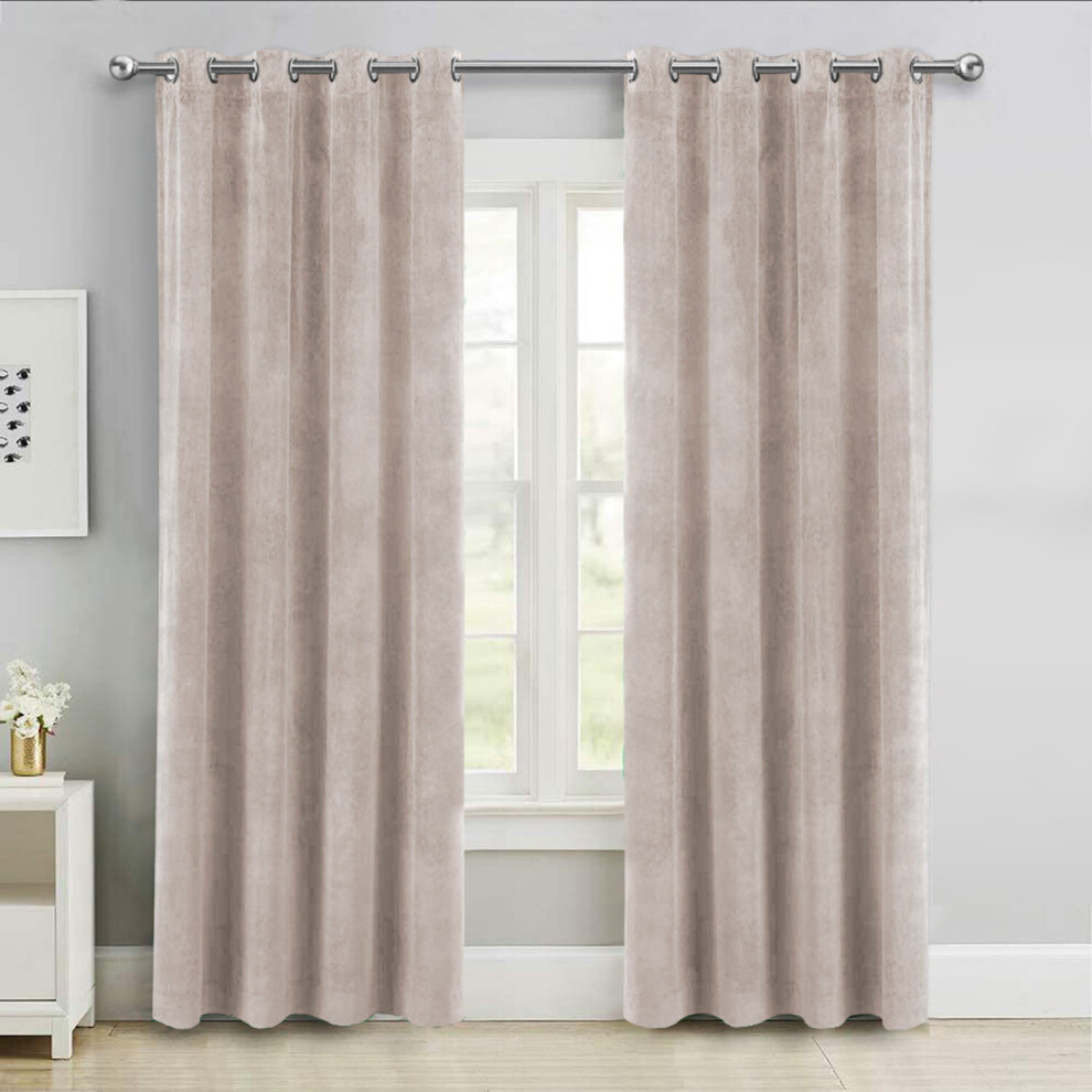 (Beige, 46" x 54" (116cm x 137cm)) Thick Velvet Curtains Pair Thermal Eyelet Ring Top