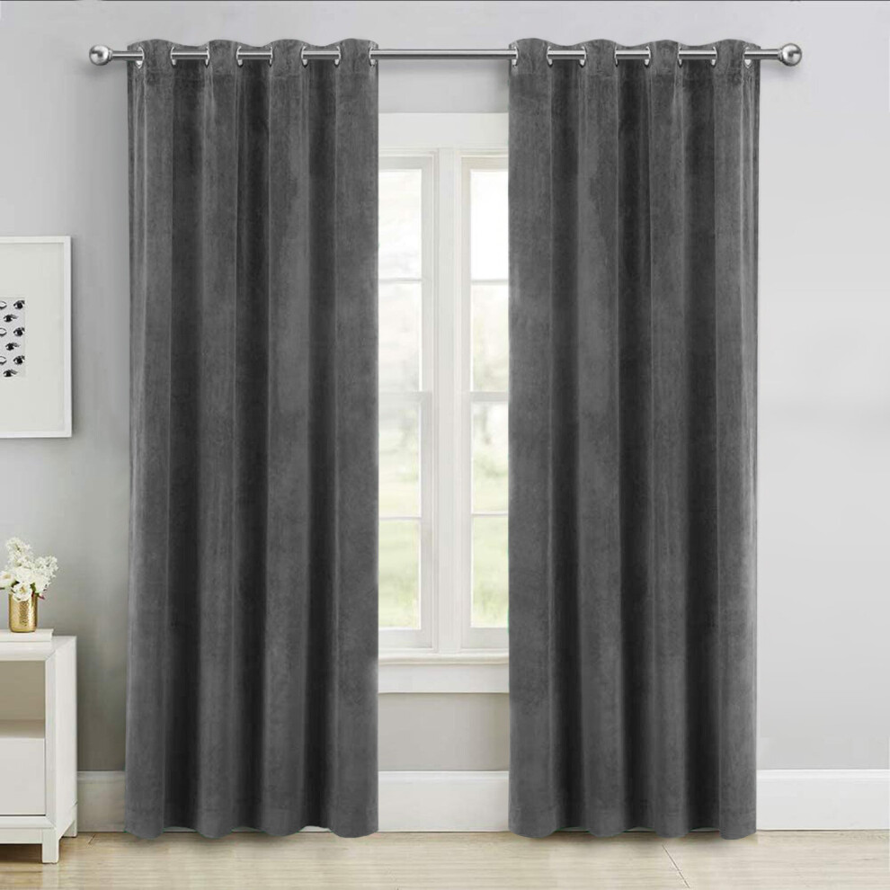 (Grey, 66" x 72" (167cm x 183cm)) Thick Velvet Curtains Pair Thermal Eyelet Ring Top