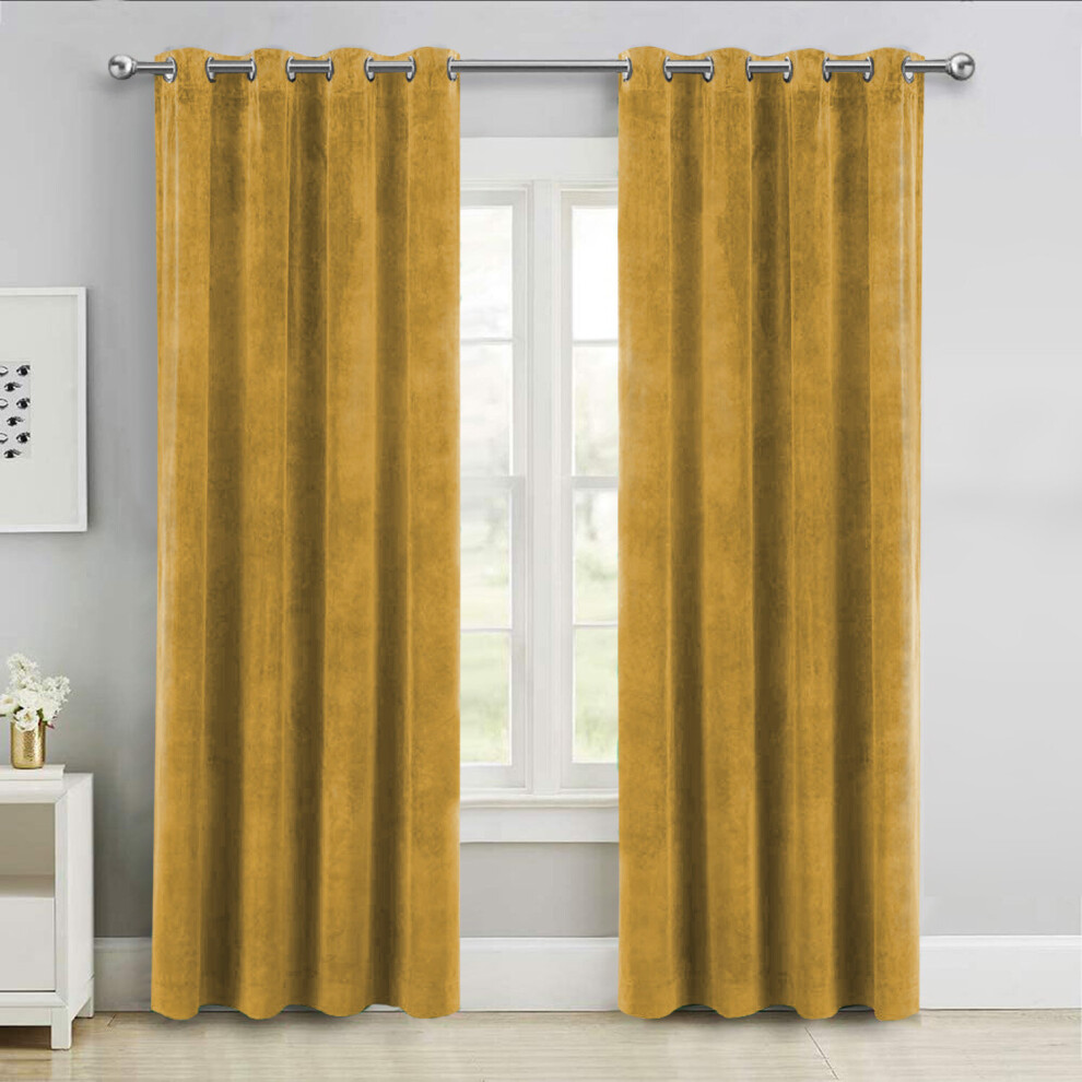 (Ochre, 46" x 54" (116cm x 137cm)) Thick Velvet Curtains Pair Thermal Eyelet Ring Top