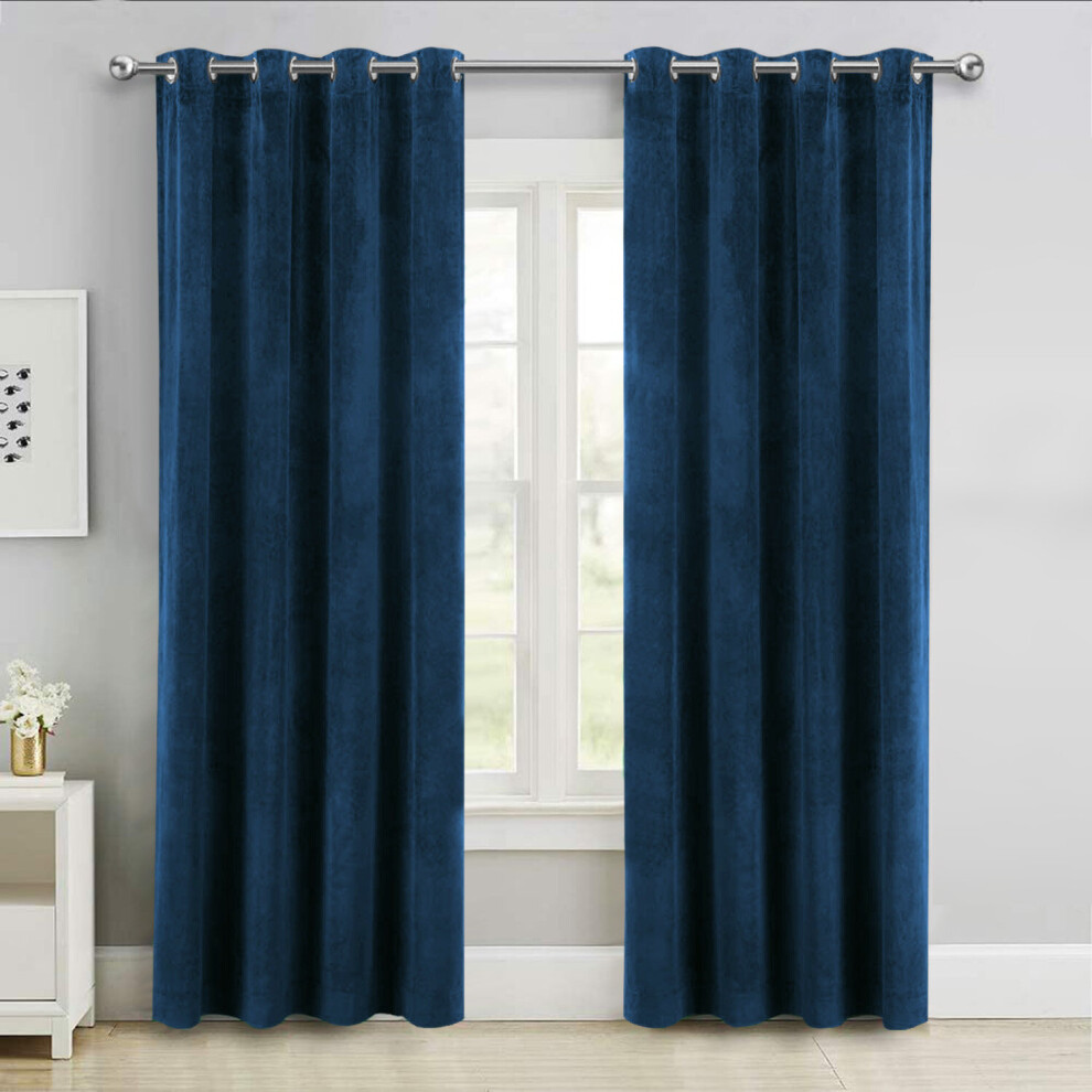 (Blue, 46" x 54" (116cm x 137cm)) Thick Velvet Curtains Pair Thermal Eyelet Ring Top