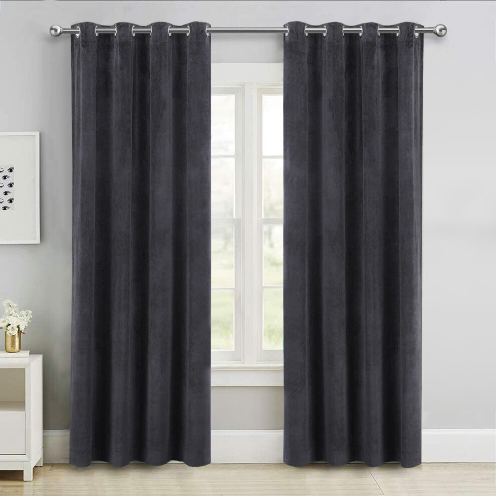 (Charcoal, 46" x 54" (116cm x 137cm)) Thick Velvet Curtains Pair Thermal Eyelet Ring Top
