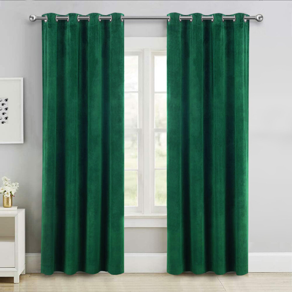 (Green, 46" x 54" (116cm x 137cm)) Thick Velvet Curtains Pair Thermal Eyelet Ring Top