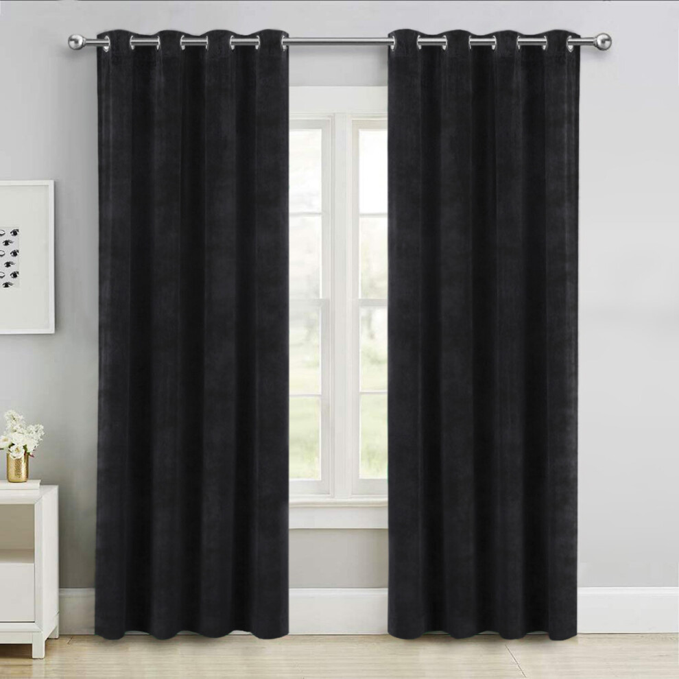 (Black, 46" x 54" (116cm x 137cm)) Thick Velvet Curtains Pair Thermal Eyelet Ring Top