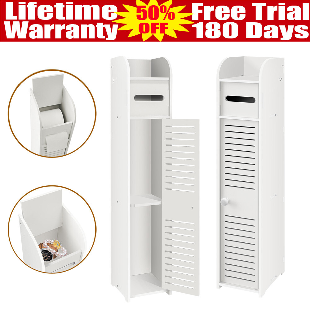 Bathroom Storage Cupboard Thin Cabinet Unit Shelf White Door Shelving Cabinet