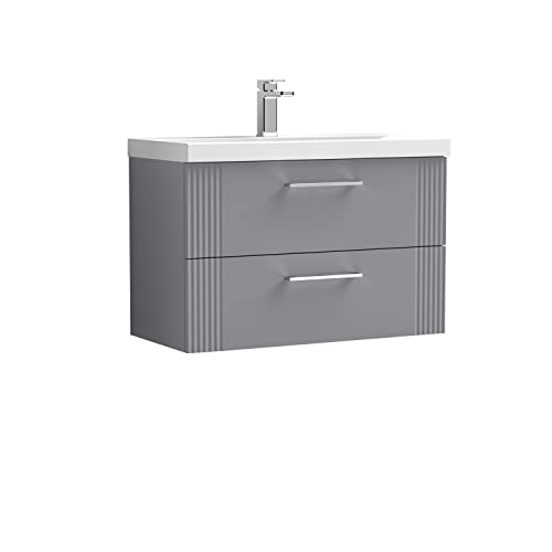nuie DPF295D Deco Modern Bathroom Wall Hung 2 Drawer Part Fluted Vanity Unit with Thin-Edge Ceramic Basin, Satin Grey