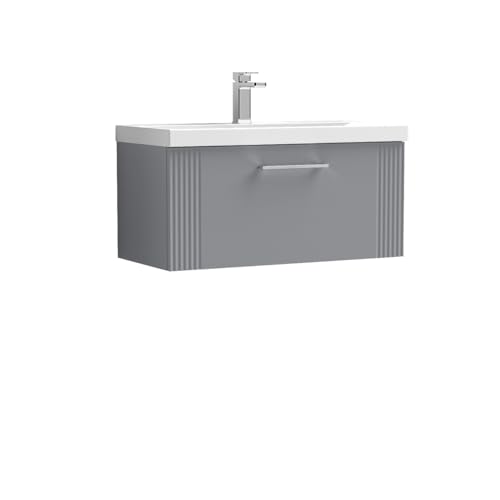 nuie DPF296D Deco Modern Bathroom Wall Hung 1 Drawer Part Fluted Vanity Unit with Thin-Edge Ceramic Basin, Satin Grey
