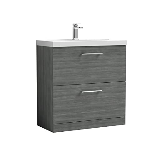 nuie ARN533D Arno Modern Bathroom Floor Standing 2 Drawer Vanity Unit with Thin-Edge Ceramic Basin, Anthracite