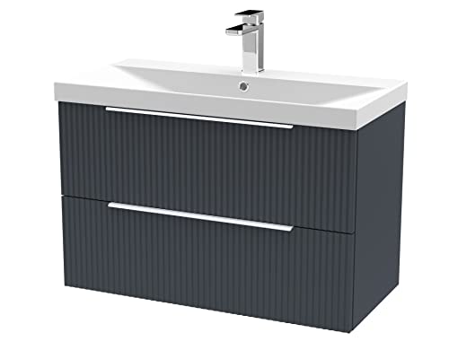 Balterley Vanity Unit with Basin Wall Hung, Single Drawer Soft Close with Thin Edge Sink and Handle, Bathroom Vanity Units with Basin, Partial Fluted Sink Cabinet - 810 x 395 x 409mm (Dark Grey)