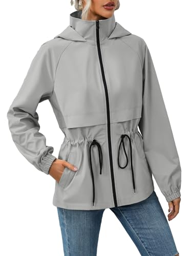 Rapbin Rain Coats for Women Waterproof Lightweight Summer Jackets Rain Jacket Packable Thin Raincoat Windbreaker(Grey,S)