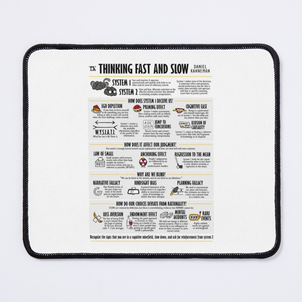 Mouse Pad Visual Book Thinking Fast and Slow (Daniel Kahneman) 11.8 x 9.8 inch Computer Mat Gaming Office Mousepad