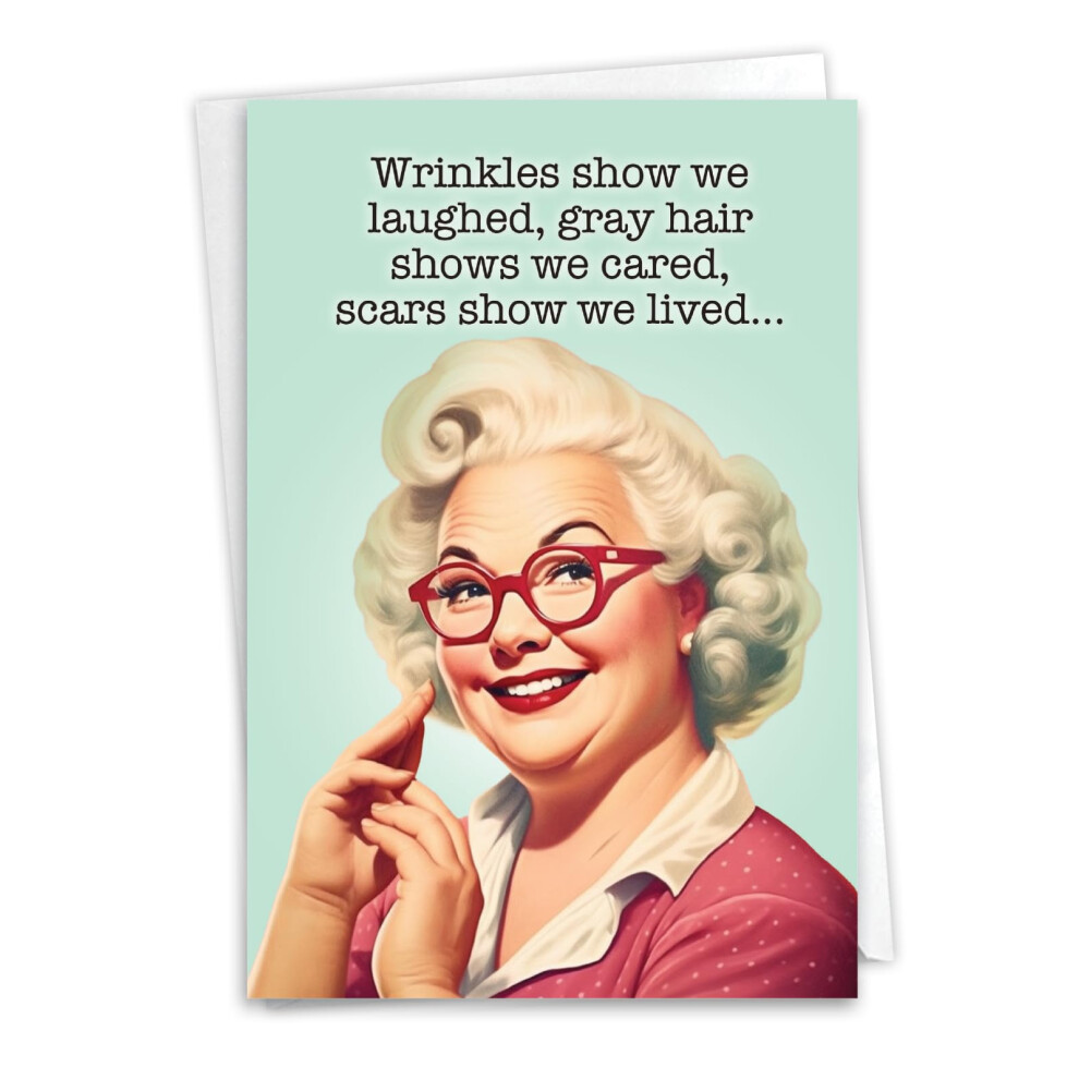 NobleWorks Funny Women Birthday Greeting Card with 5 x 7 Inch Envelope (1 Card) Bday for Her My Wrinkles C10830BDG