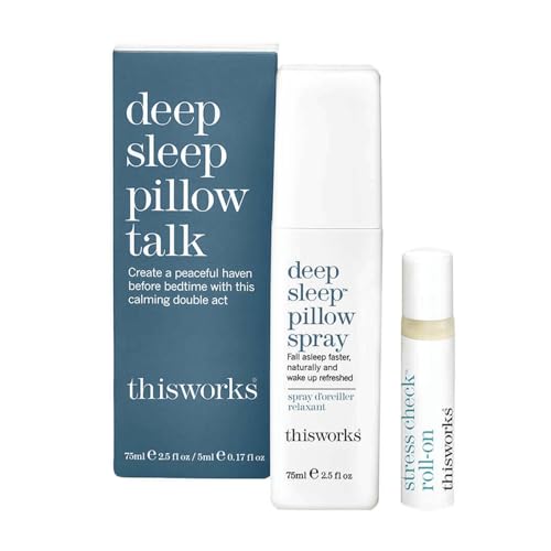 This Works Deep Sleep Pillow Talk Kit - Gift Set with Deep Sleep Pillow Spray 75 ml and Stress Check Roll On 5 ml - Self Care and Sleep Gifts for Women