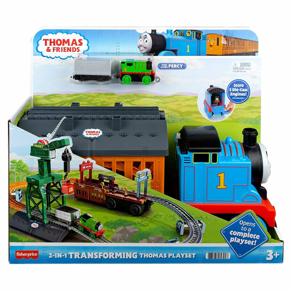 Thomas & Friends Fisher-Price 2-in-1 Transforming Thomas Playset, push-along train and track set with storage and working crane for kids ages 3 & up