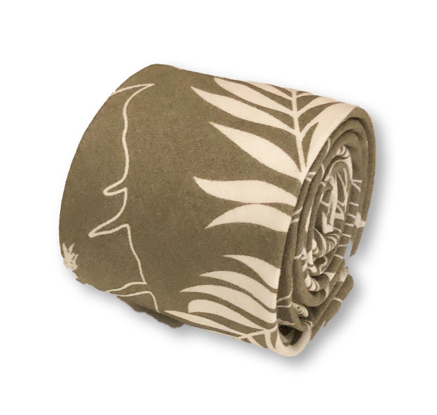 Designer khaki green mens cotton tie nature palm leaf design by Frederick Thomas
