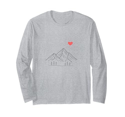 Mountain Lovers Motif - Heart Illustration for Nature Lovers Long Sleeve T-Shirt
