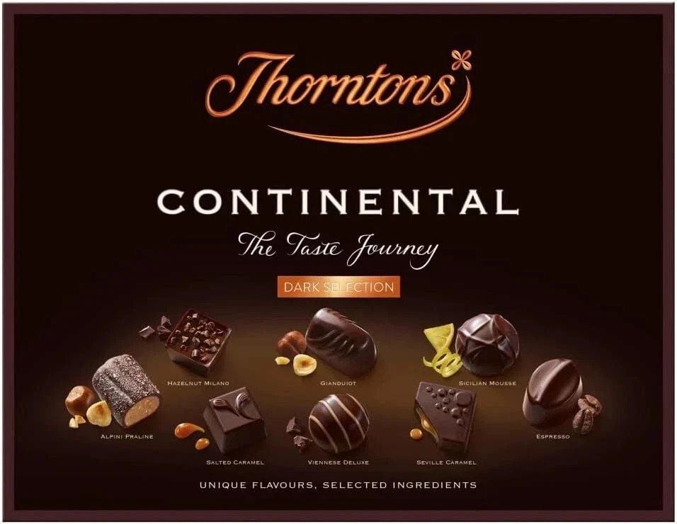 Thorntons Continental, Chocolate Gift, Unique Flavours Milk, White, Dark Chocol