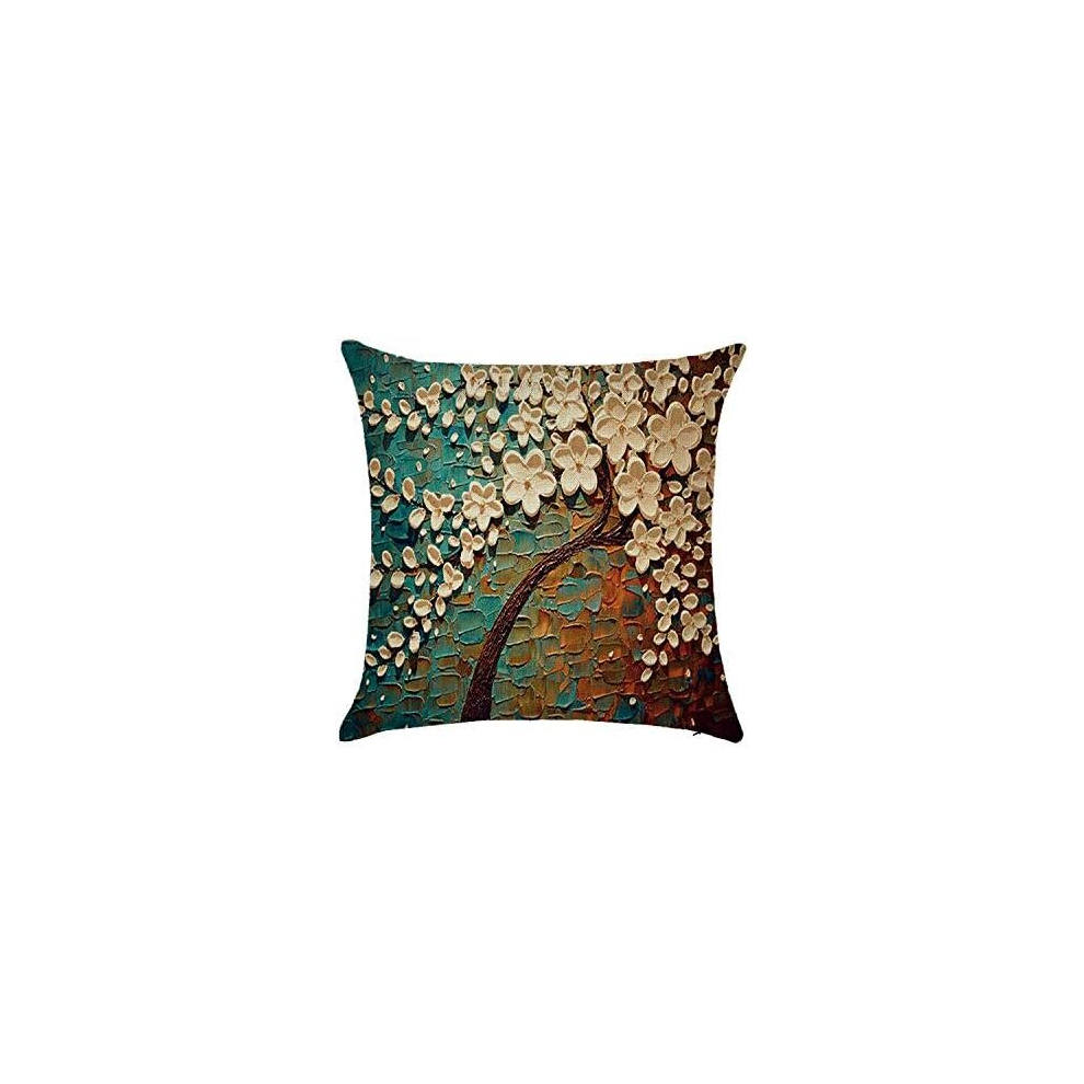 Throw Pillows Three-Dimensional Oil Painting Tree Printed Linen Cushion Cover, Ym033-1,45*45Cm (Excluding Pillow Core)