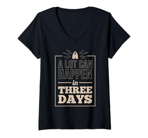 Women's in Three Days Much Can Happen Women Men Christian Easter V-Neck T-Shirt