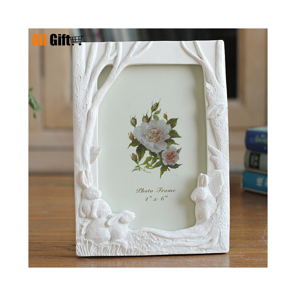 Selling Newest Creative Photo Frame 6 Inch Three Rabbits with Resin Photo Frame The Rabbit Tree Painted Household Ornaments