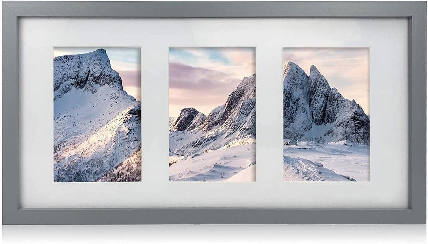 H7 Vintage Wood Picture Photo Frame with Dark Grey 7 x 5 Inch Three Aperture Long Mount