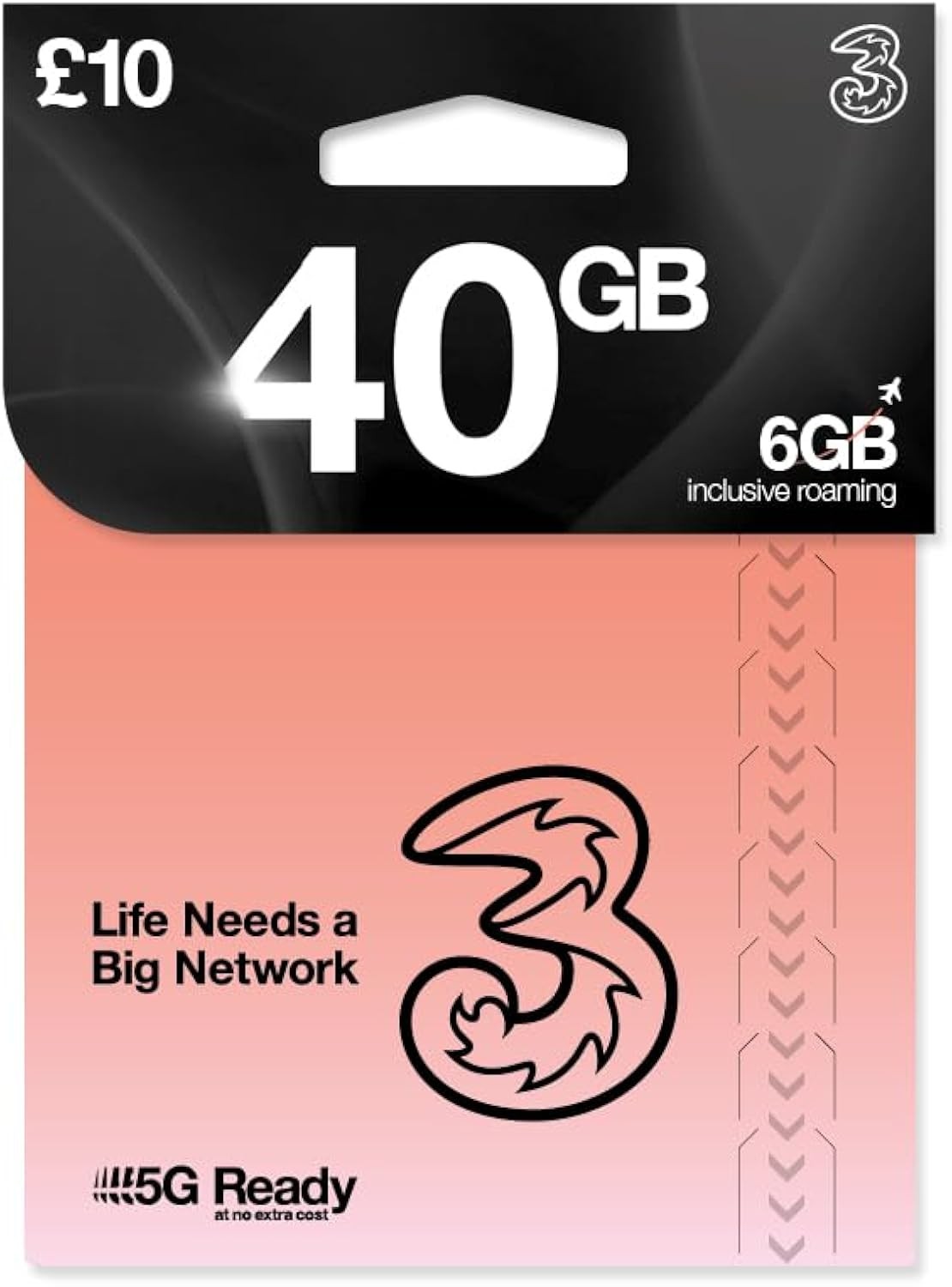 Three Mobile PAYG Voice SIM Pack - 40GB - £10