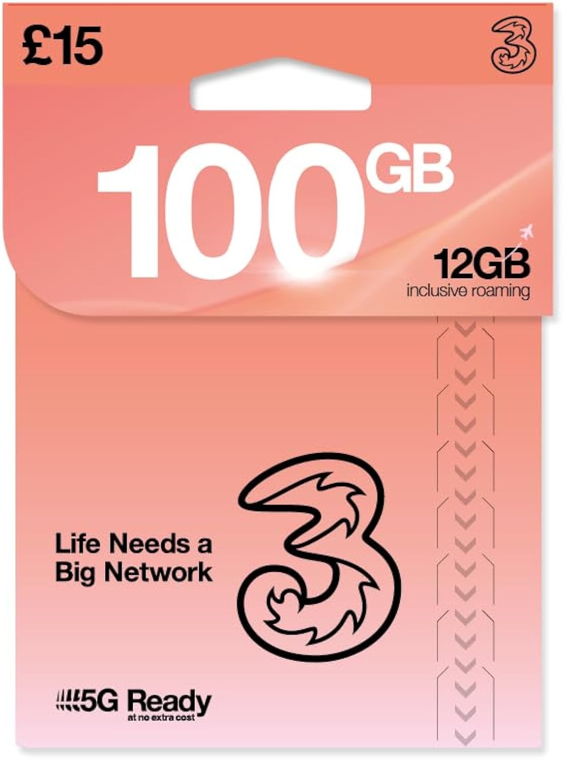 THREE 4G/5G SIM Card UK & ROAM FREE in over 70 destinations - PREPAID PAYG 15 Bundle - 75GB + (25GB FREE DATA) Unltd Texts & Mins - ROAMING ALLOWANC