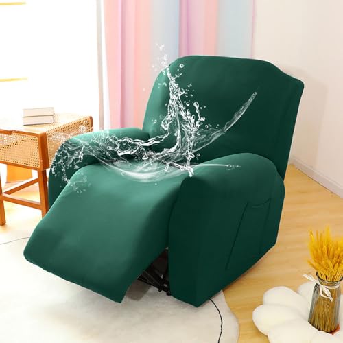 Chickwin Recliner Chair Cover 1/2/3 Seater, Recliner Sofa Covers with Pockets, Elastic Recliner Chair Covers for Electric Chair, for Living Room Furniture Protector Pets (Three Seat,Dark Green)