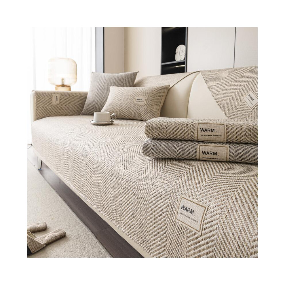 xotoa Thickened Velvet Sofa Cover, Three-seat Sofa Anti-slip Protective Cover, Silicone Dot Matrix Anti-slip And Non-shifting(Brown,27.5x27.5 inch)