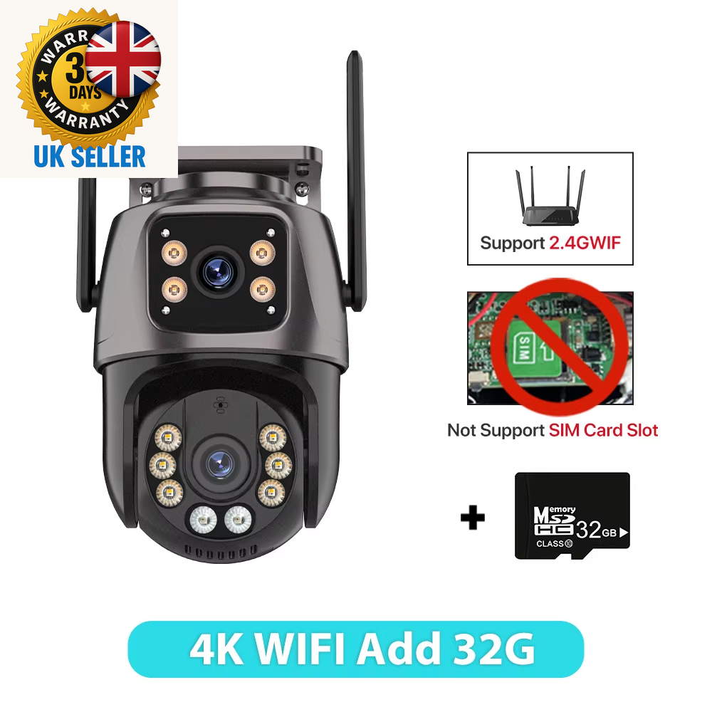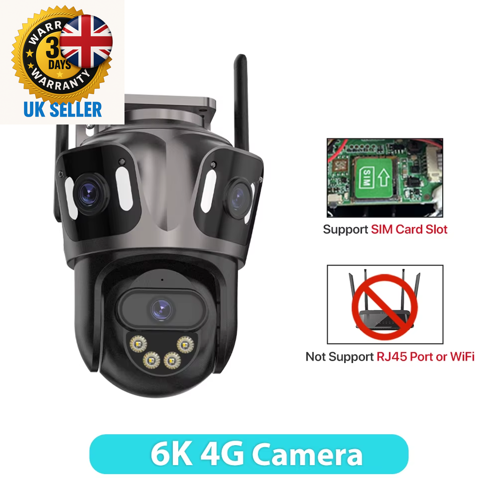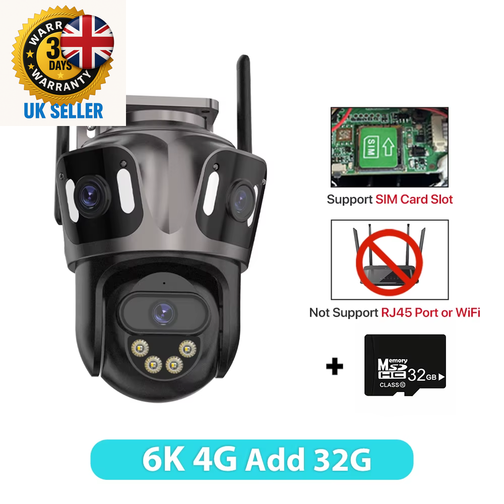 Three Lens Three Screen 4G Sim Card IP Camera 6K Video Surveillance 4K 8MP HD Wi