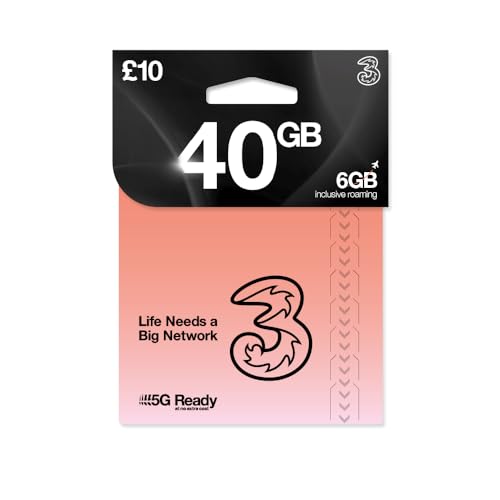 THREE 4G/5G SIM Card UK & ROAM FREE in Three £10 - 40GB + ROAMING 6GB