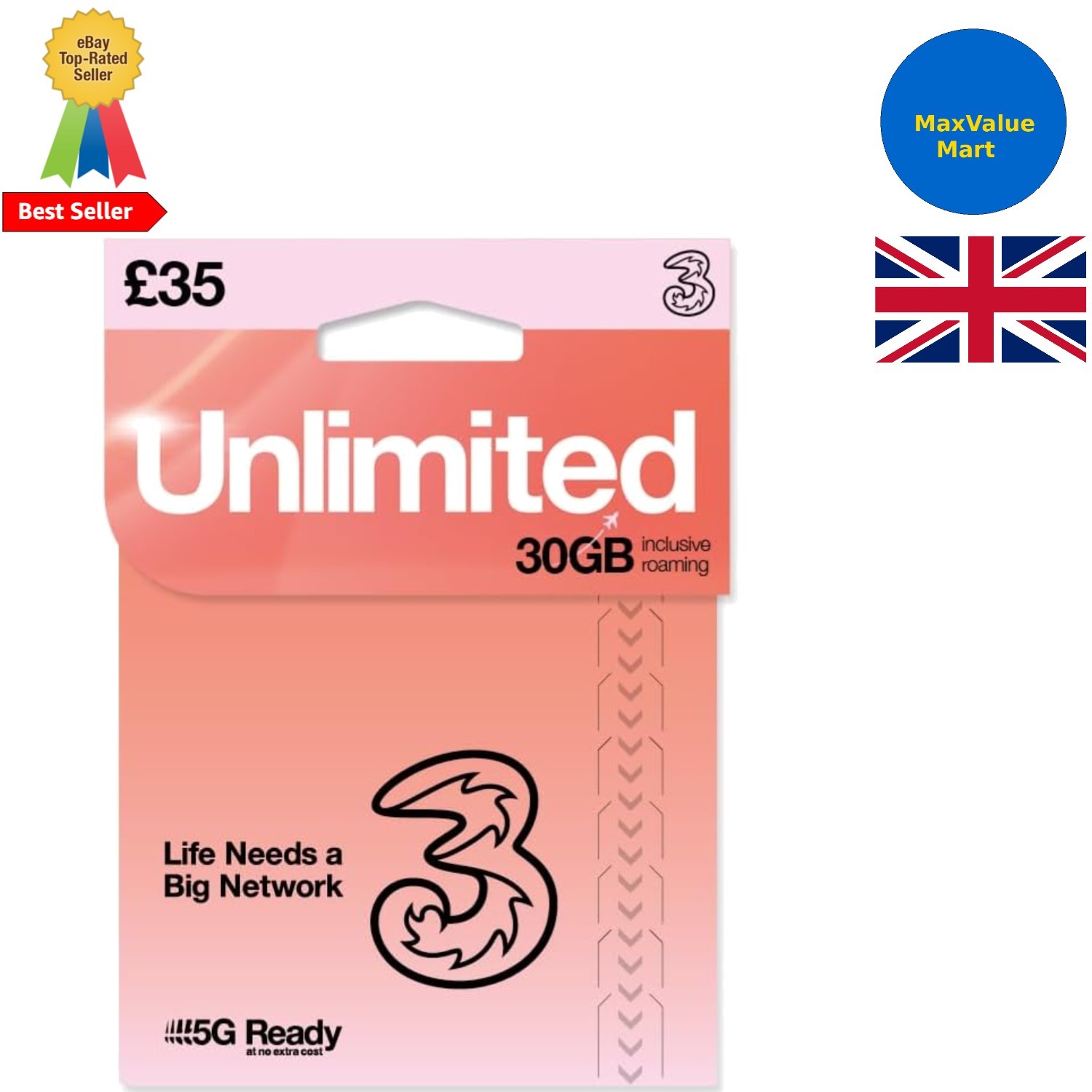 Three Sim Card Preloaded with UNLIMITED UK Calls, Texts & 4G/5G Data. (Valid ...