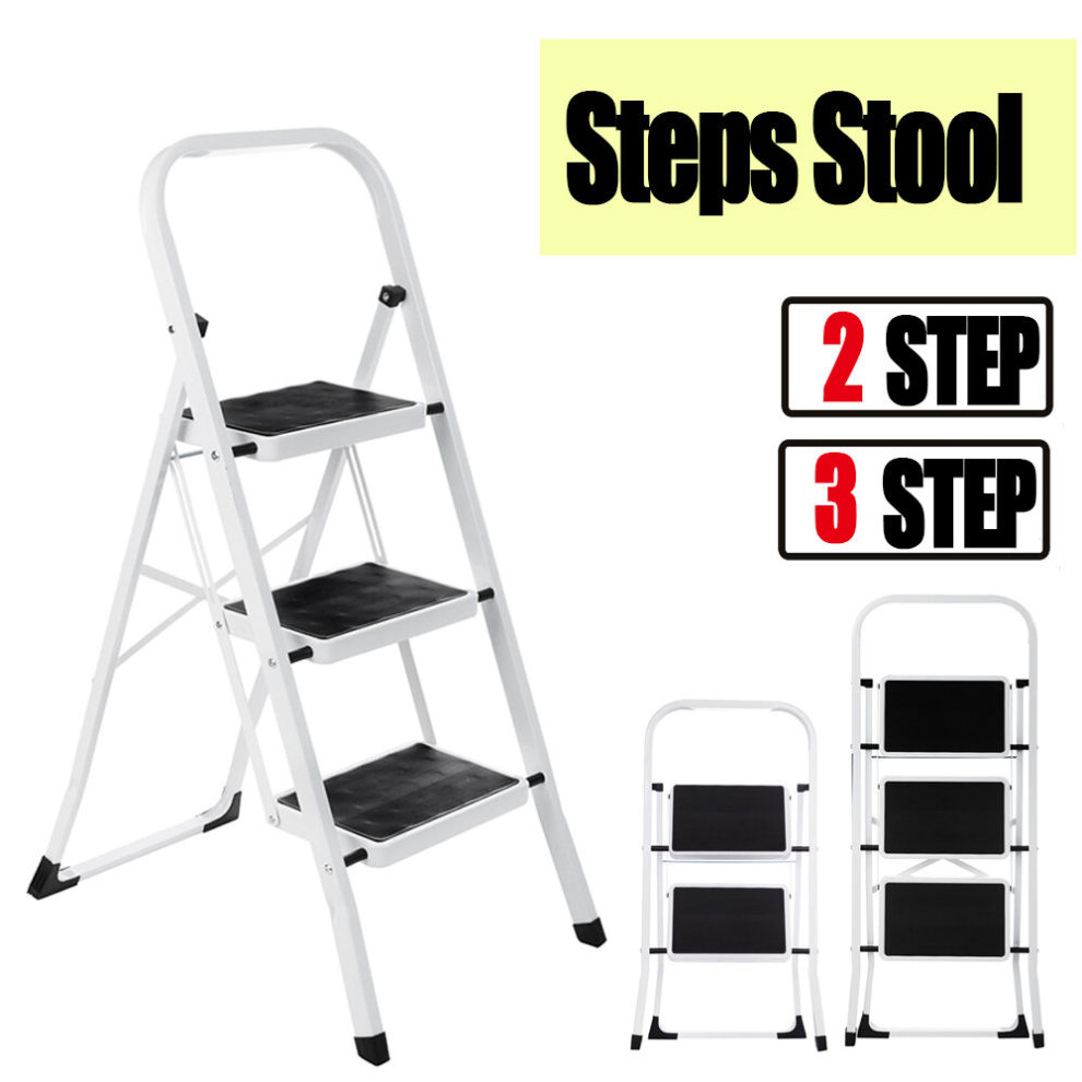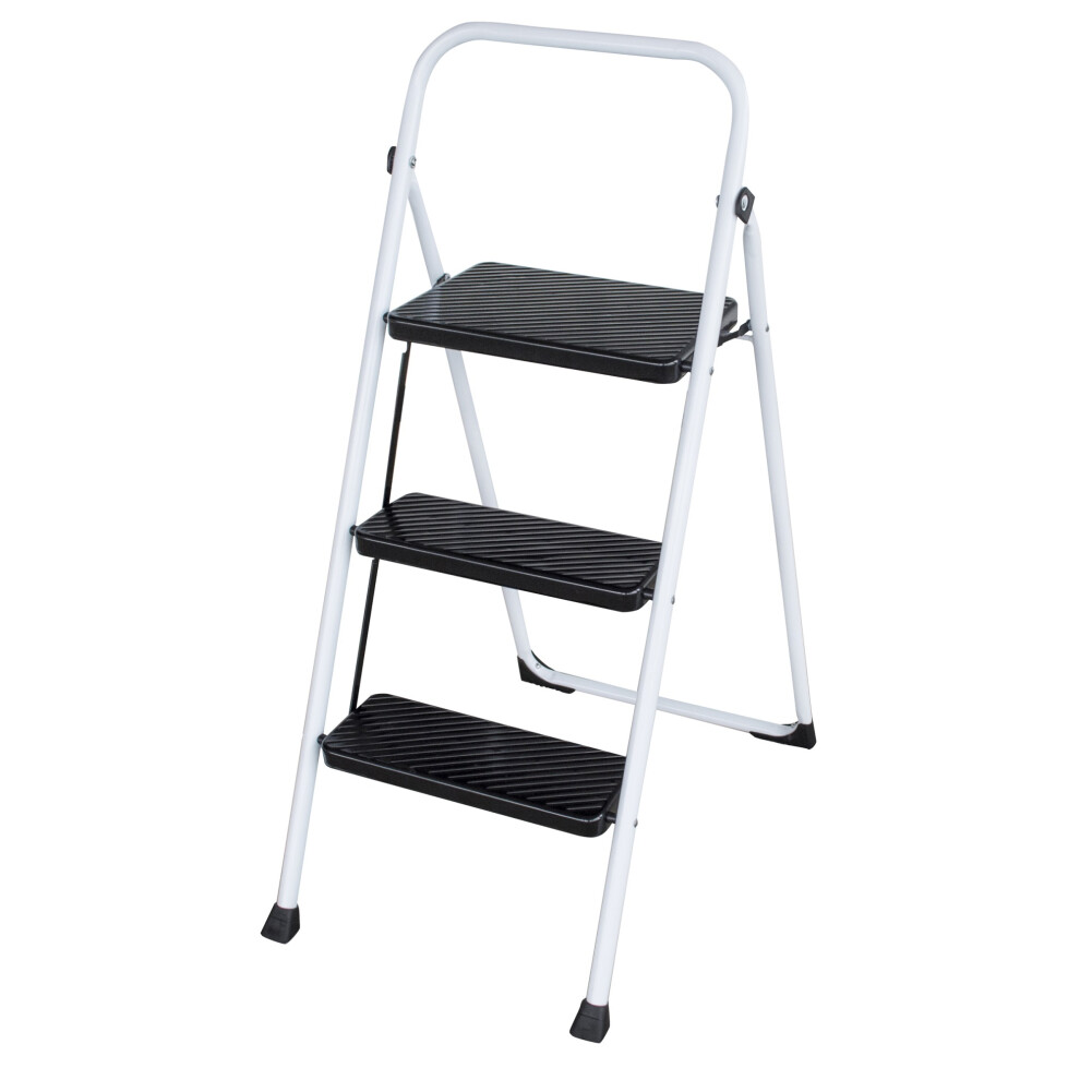 Folding Metal 3 Step Ladder - Portable Three Step Ladders With Wide Steps