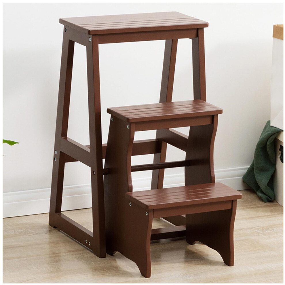 YBNKKUXKN Stepstools Portable Staircase Stool Multifunctional Three-step Ladder Wooden Folding Stair Chair Suitable for Kitchen Study Bedroom Ladder(Dark Walnut)