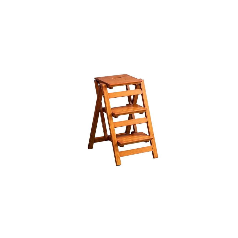 YBNKKUXKN Stepstools Solid Wood Staircase Stool Multifunctional Three-step Ladder Chair Folding Stair Suitable for Kitchen Bathroom and Office Ladder(Light Walnut)