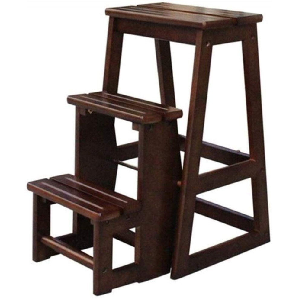 YBNKKUXKN Stepstools Solid Wood Staircase Stool Multifunctional Folding Stair Three-step Ladder Chair Suitable for Kitchen Bathroom and Office Ladder(Black Walnut)