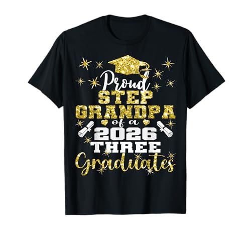Proud Step Grandpa of Three 2026 Graduates Graduation Family T-Shirt