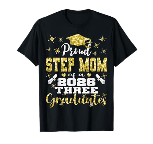 Proud Step Mom of Three 2026 Graduates Graduation Family T-Shirt