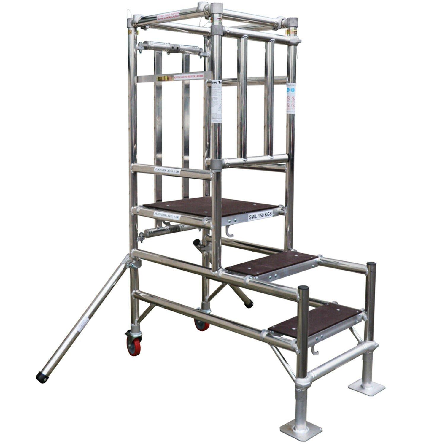 4 Tread Mobile Telescopic Podium Step Ladder 1.2m Tall Work Platform Safety Cage
