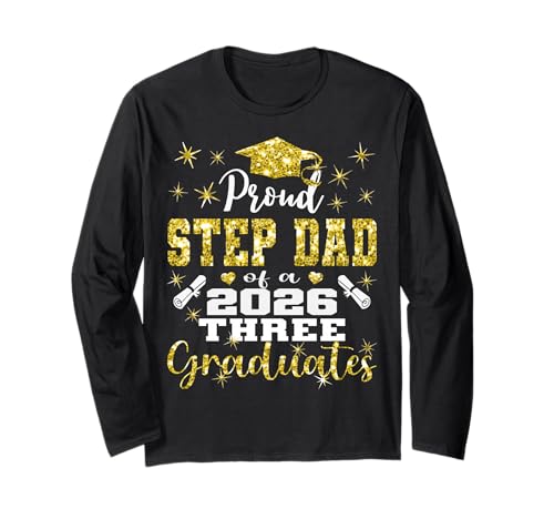 Proud Step Dad of Three 2026 Graduates Graduation Family Long Sleeve T-Shirt