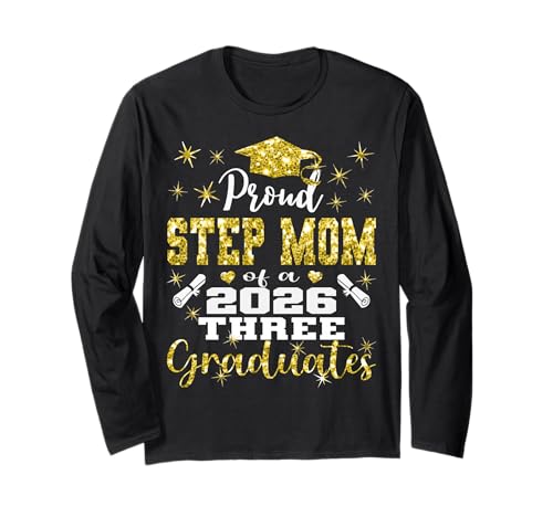Proud Step Mom of Three 2026 Graduates Graduation Family Long Sleeve T-Shirt