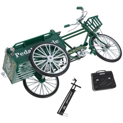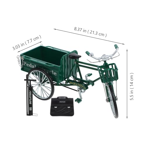 BESPORTBLE Vintage Green Desktop Tricycle Model Ornament, Simulation Miniature Retro Bike Craft for Home Décor and Office Desk Decoration, Collectible Three-Wheel Bike Figurine