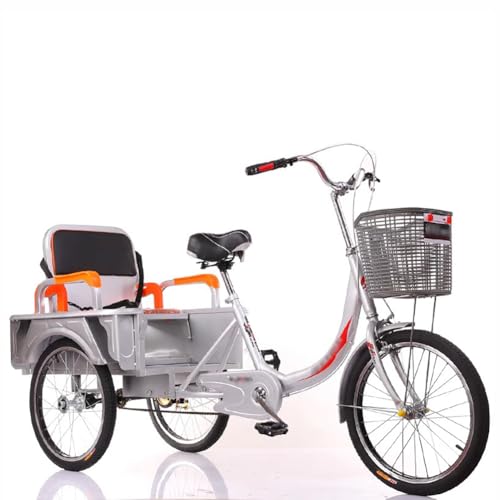 MegLob 2 in 1 Adult Tricycle Bike, 20IN Carbon Steel 3 Wheeled Cruise Trike Bike with Dual Brakes, Three-Wheeled Bicycles Cruise Trike with Adjustable Rear Seat, Single Speed 3 Wheel Bikes,Silver