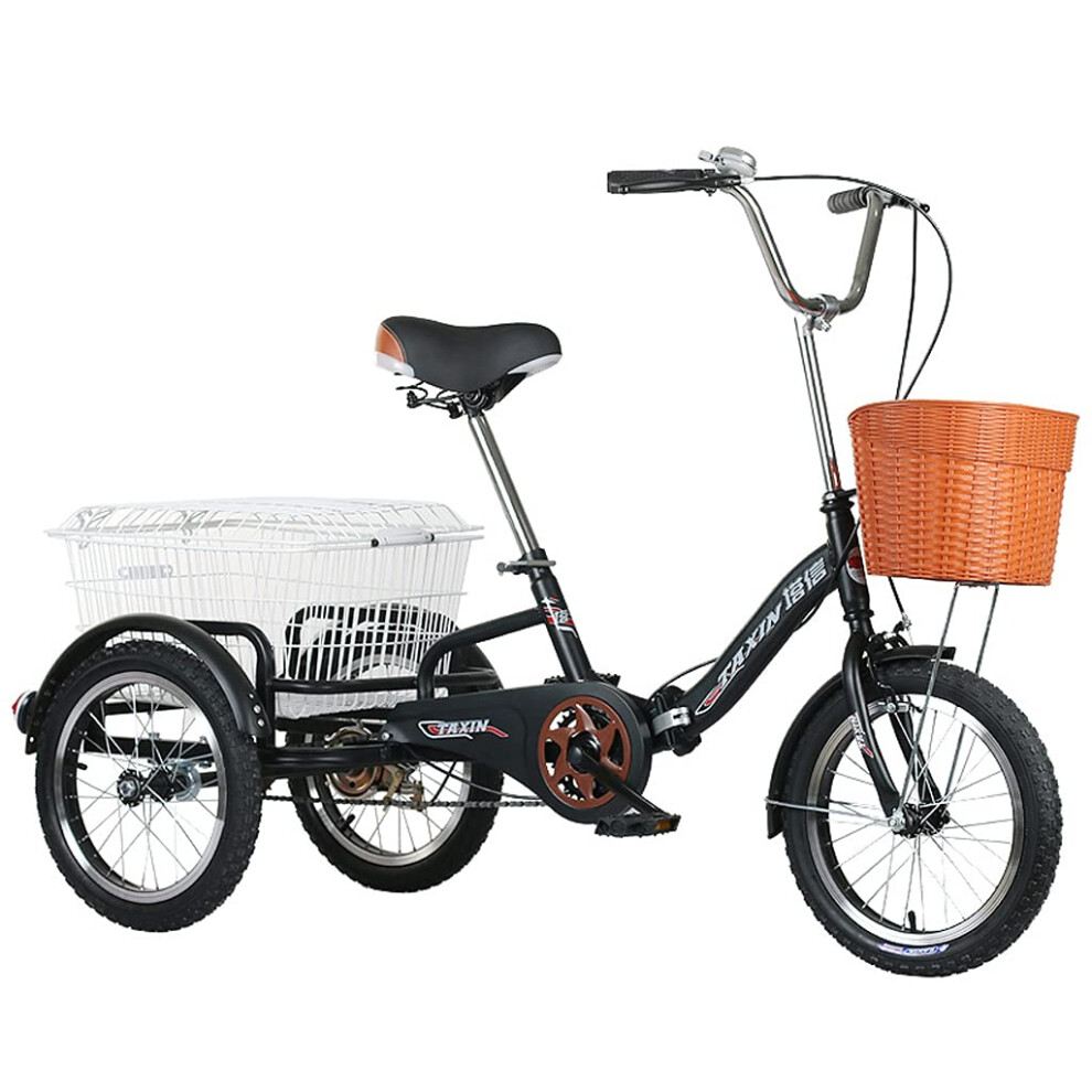 Three Wheel Bike Folding Tricycle With Shopping Basket Black Unisex For Seniors