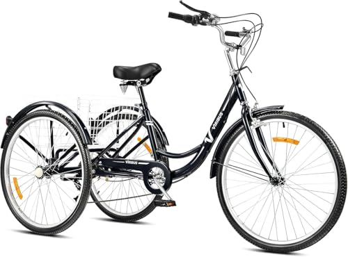 Viribus 26 Inch Adult Tricycle, 7 Speed Adult Trike 3 Wheel Cargo Bike with Basket & 205 kg Cap for Men Women Senior, Adjustable Three Wheel Bike Cruiser Bicycle for Shopping Cycling Pedalling, Black