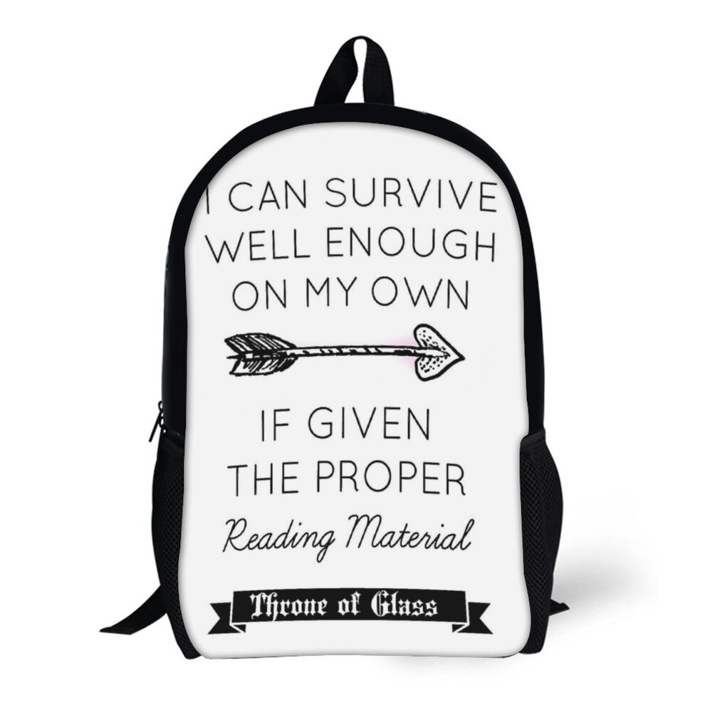 Backpacks THRONE OF GLASS QUOTES 17inch School Bag