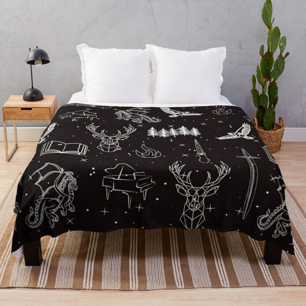 Fleece Throw Blanket ACOTAR Feyre's Tattoo/The Night Court/Throne of Glass/SJM Bookish/TOG Bookish for Sofa Couch Kids 60 x 50 Inches