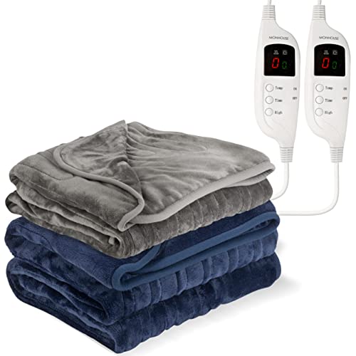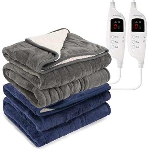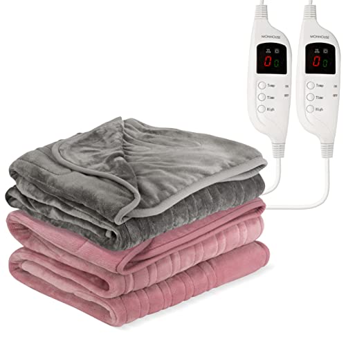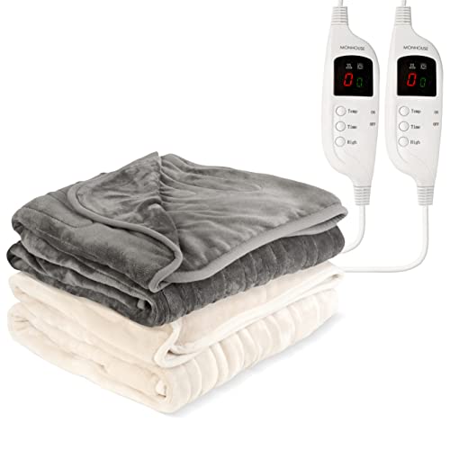 MONHOUSE Heated Throw - Pack Of 2 Electric Blankets - Digital Controller - Timer up to 9 hours, 9 Heat Settings, Auto Shutoff - Machine Washable - Single 130X160cm - GREY