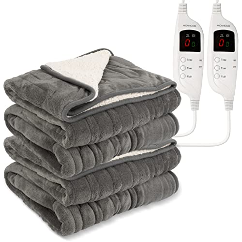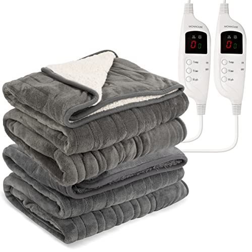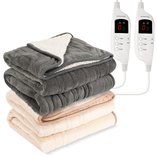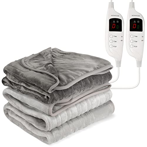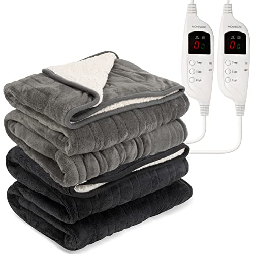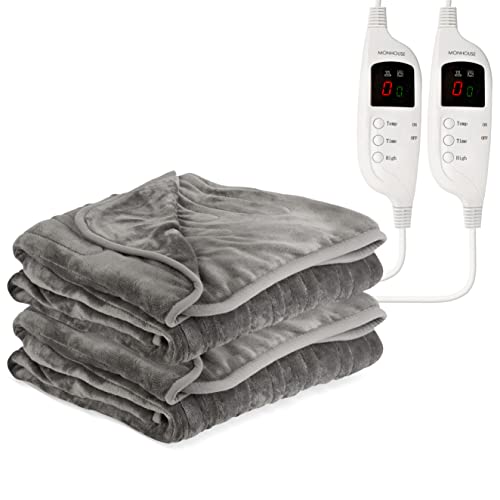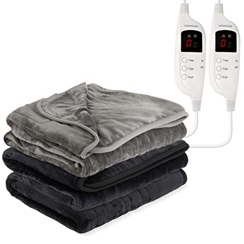 MONHOUSE Heated Throw - Pack Of 2 Electric Blankets - Digital Controller - Timer up to 9 hours, 9 Heat Settings, Auto Shutoff - Machine Washable - Double 150X200cm - GREY